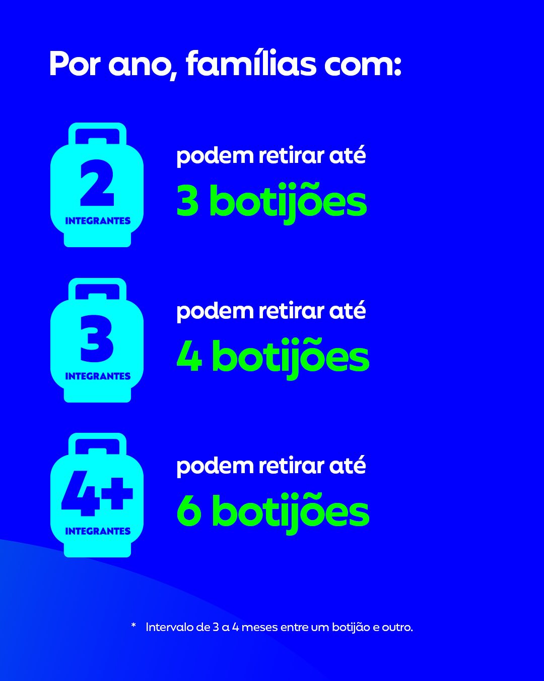 (Intervalo de 3 a 4 meses entre um botijão e outro.)
